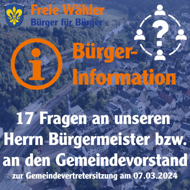 09.03.2024: 17 Anfragen zur 18. Sitzung der Gemeindevertretung (GVE)